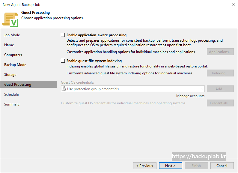 - Managed by agent - Veeam 백업 서버는 모든 에이전트에 보호 정책을 배포하지만 job은 에이전트에서 관리.