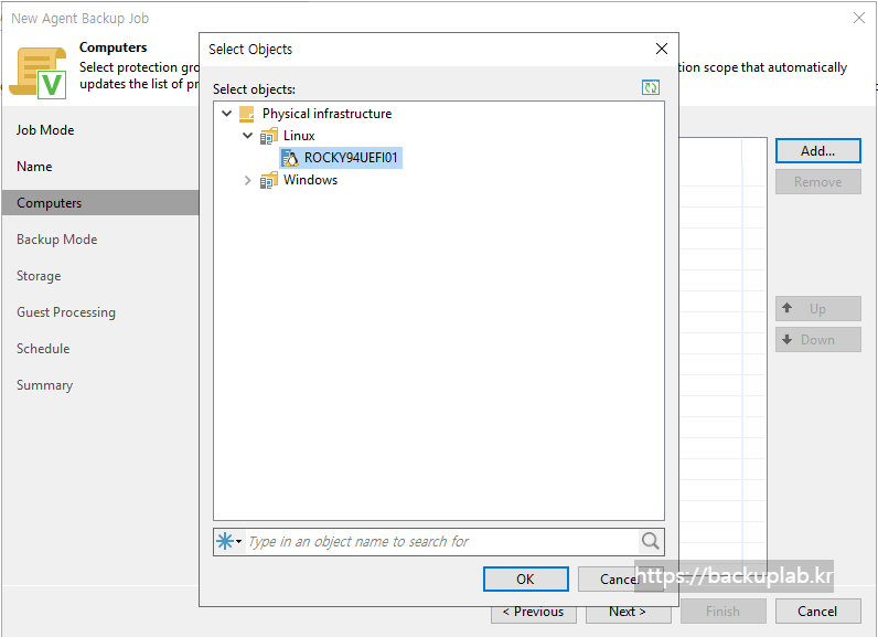 Computers 단계에서는 백업하려는 데이터가 포함된 Protection Group과 Individual computers를 선택.