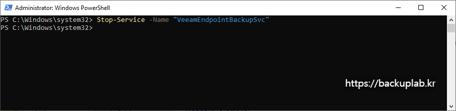 Veeam Agent for Microsoft Windows 서비스를 중지.