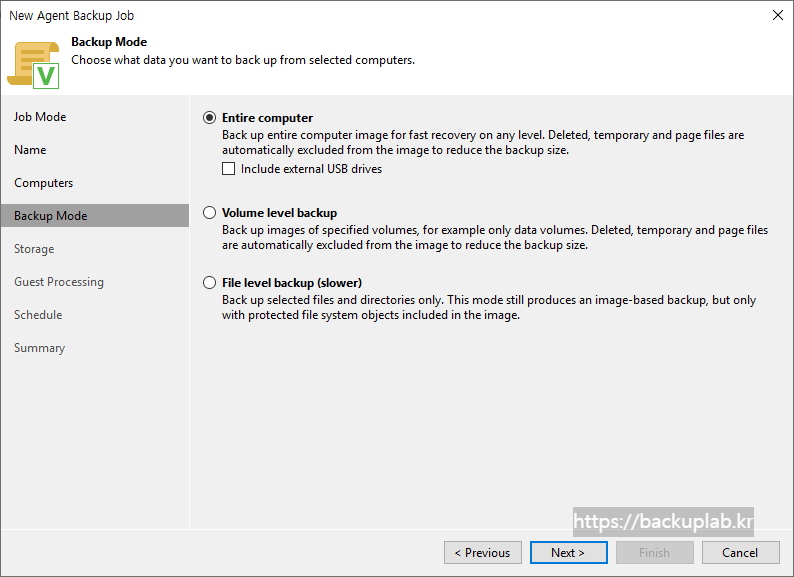 Backup Mode 단계에서 컴퓨터의 개별 폴더의 백업을 만들려는 경우, File level backup 을 선택.